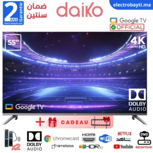 Daiko 55″- Google TV 5.0– 4K UHD, HDR10, HLG, Dolby Audio – GLED55AI96DK