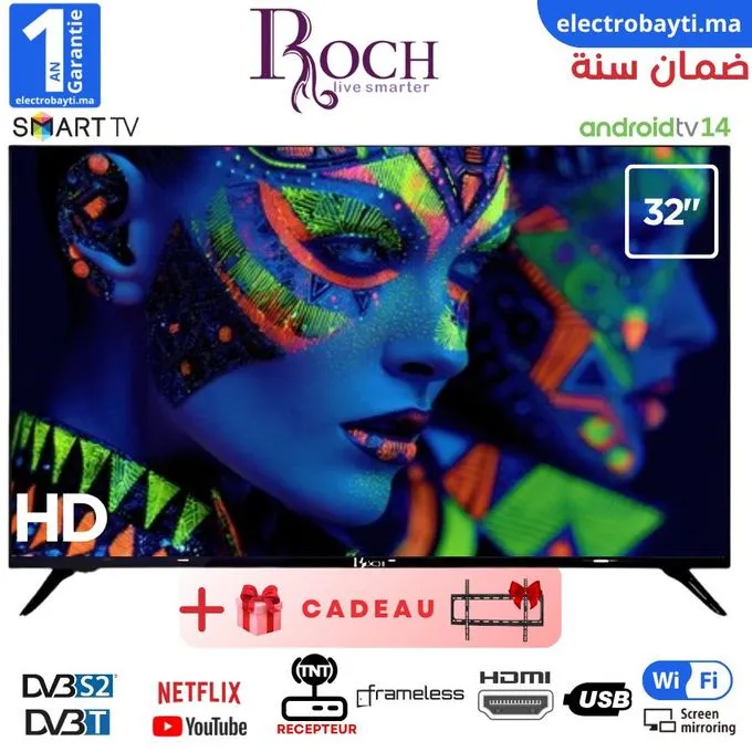 Roch – Smart TV -32 pouce Android 14 Frameless avec support GRATUIT (12 mois garantie)