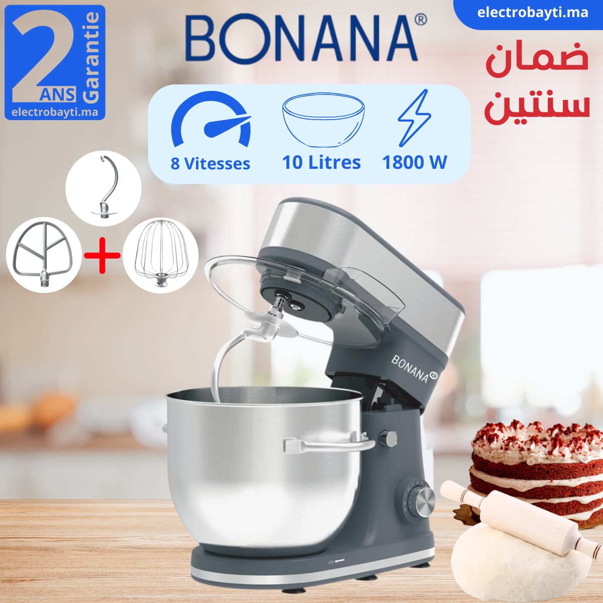 Équipée de 8 vitesses réglables, cette machine assure un mélange homogène et précis selon vos recettes. Elle est livrée avec trois accessoires indispensables : crochet pétrisseur, batteur plat et fouet, permettant de pétrir, mélanger et fouetter efficacement. Son bol en acier inoxydable garantit robustesse, hygiène et durabilité au quotidien.