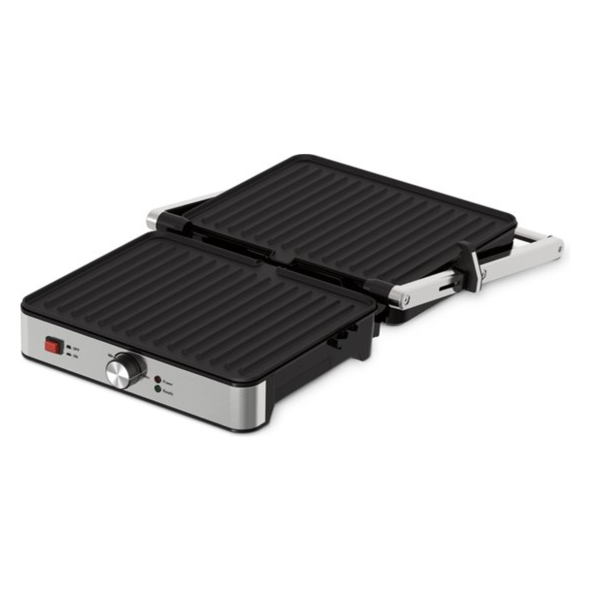 Équipé de plaques grill antiadhésives de 30 x 24 cm, il permet une cuisson homogène et un nettoyage rapide. Son thermostat réglable avec voyant lumineux atteint jusqu’à environ 200°C, pour adapter la température selon vos préparations. La poignée Cool-Touch, le fond antidérapant et le bac collecteur de graisse amovible assurent confort et sécurité à chaque utilisation.