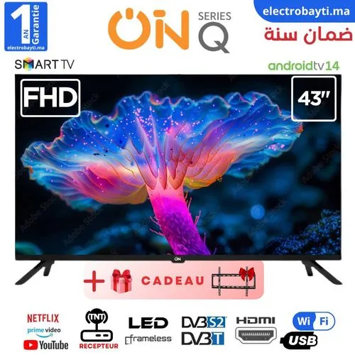 ON – 43 Smart TV Frameless FHD Récepteur Intégré HDMI + Support Mural