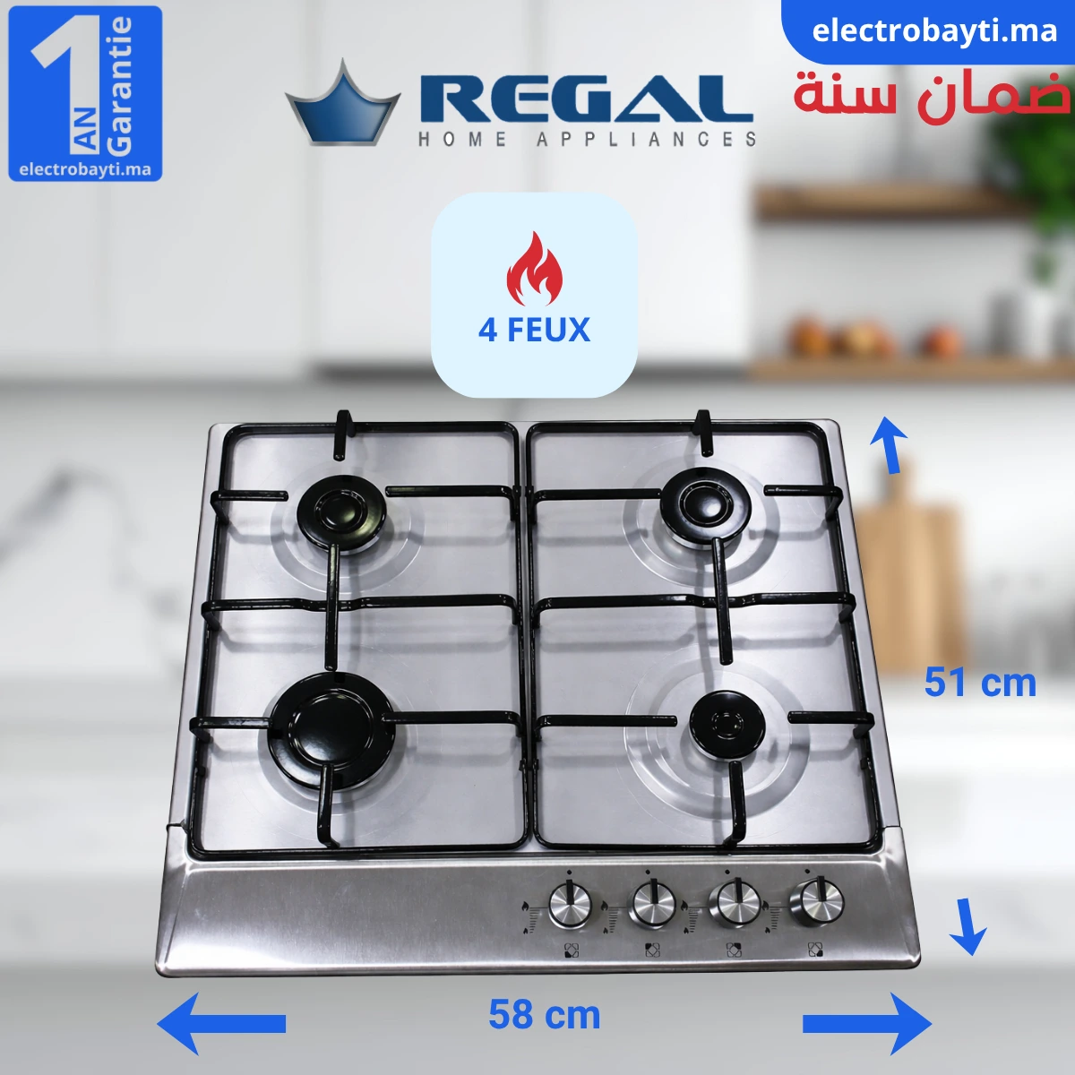 Regal Plaque De Cuisson – À Gaz – 4 Feux – INOX