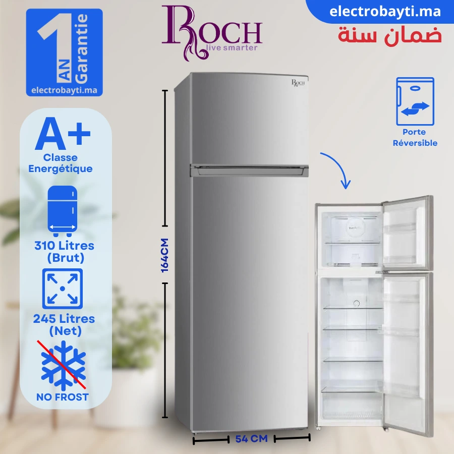 Roch – Réfrigérateur à deux portes – RFR310DTW-B- 42dB – Classe A+