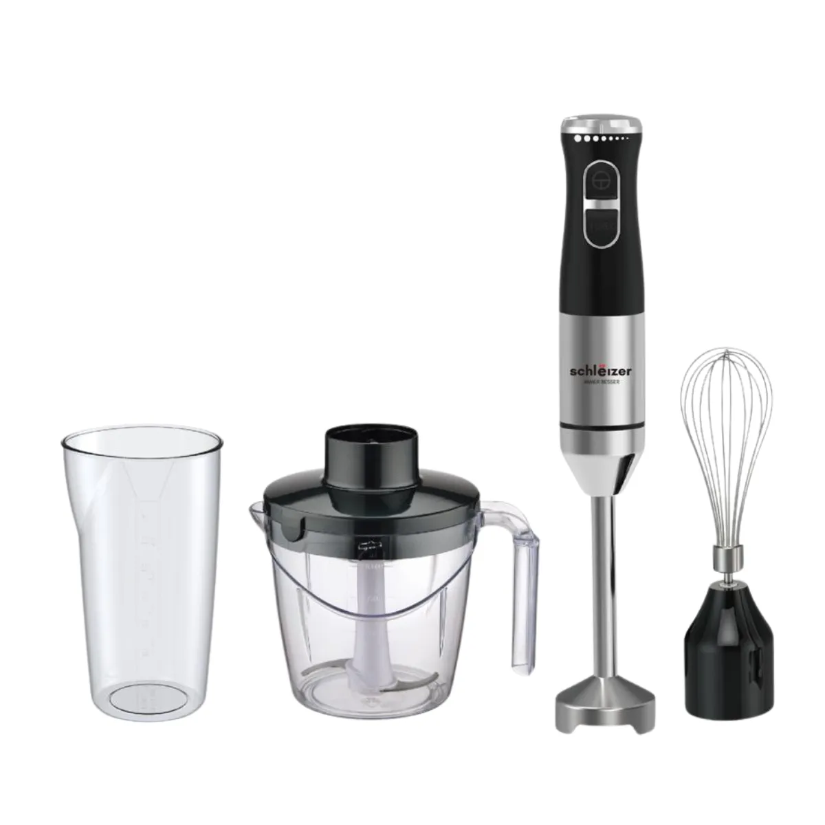 Le mixeur plongeant SCHLEIZER 4-en-1 Inox SLZ-HY66 est un appareil polyvalent et performant, idéal pour toutes vos préparations culinaires quotidiennes. Son design moderne et son corps en acier inoxydable assurent robustesse, élégance et durabilité, tout en offrant une excellente prise en main.