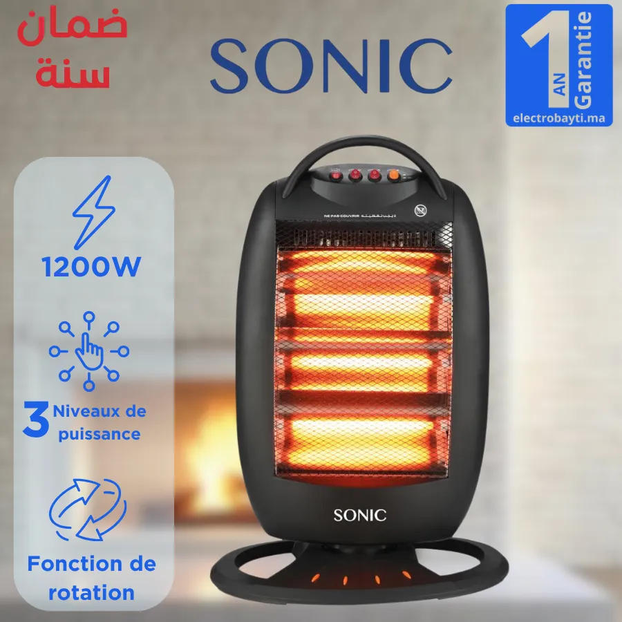 Sonic Chauffage Électrique, 1200W, Chauffage silencieux et Rapide, Chauffage quartz