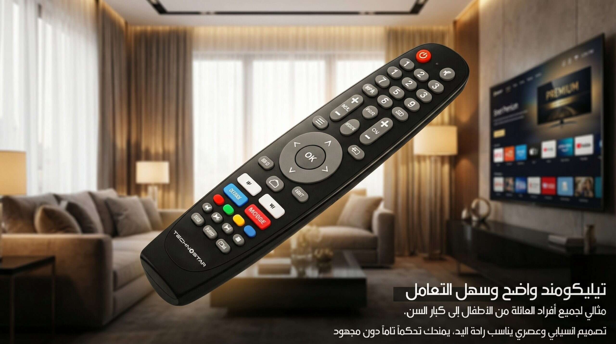 Pensée pour une utilisation pratique, cette télécommande offre une navigation fluide sur l’interface Android 14. Ses touches d’accès rapide vous permettent de gérer vos chaînes (S2/T2), de changer de source (PS/Xbox) ou de lancer YouTube et Netflix en un seul geste.
