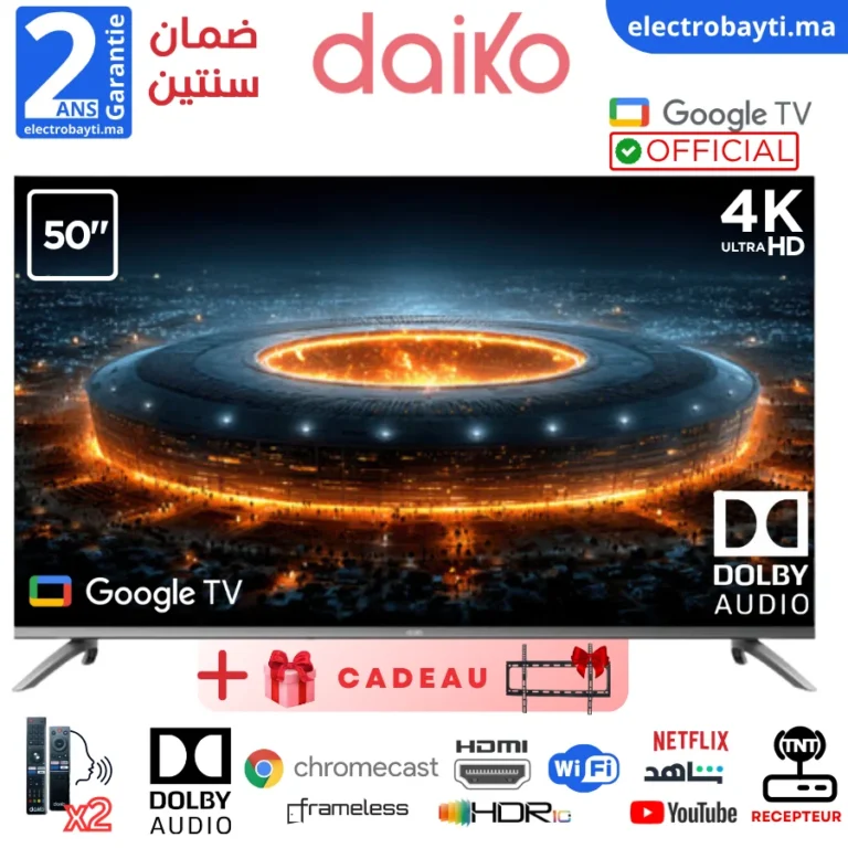Daiko 50″- Google TV 5.0– 4K UHD, HDR10, HLG, Dolby Audio – GLED50AI95DK